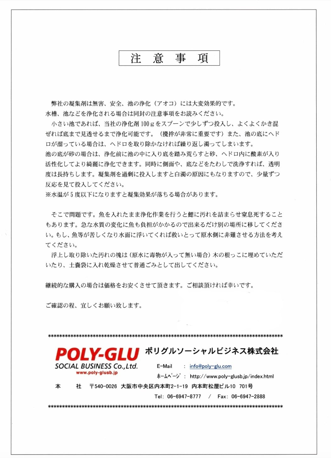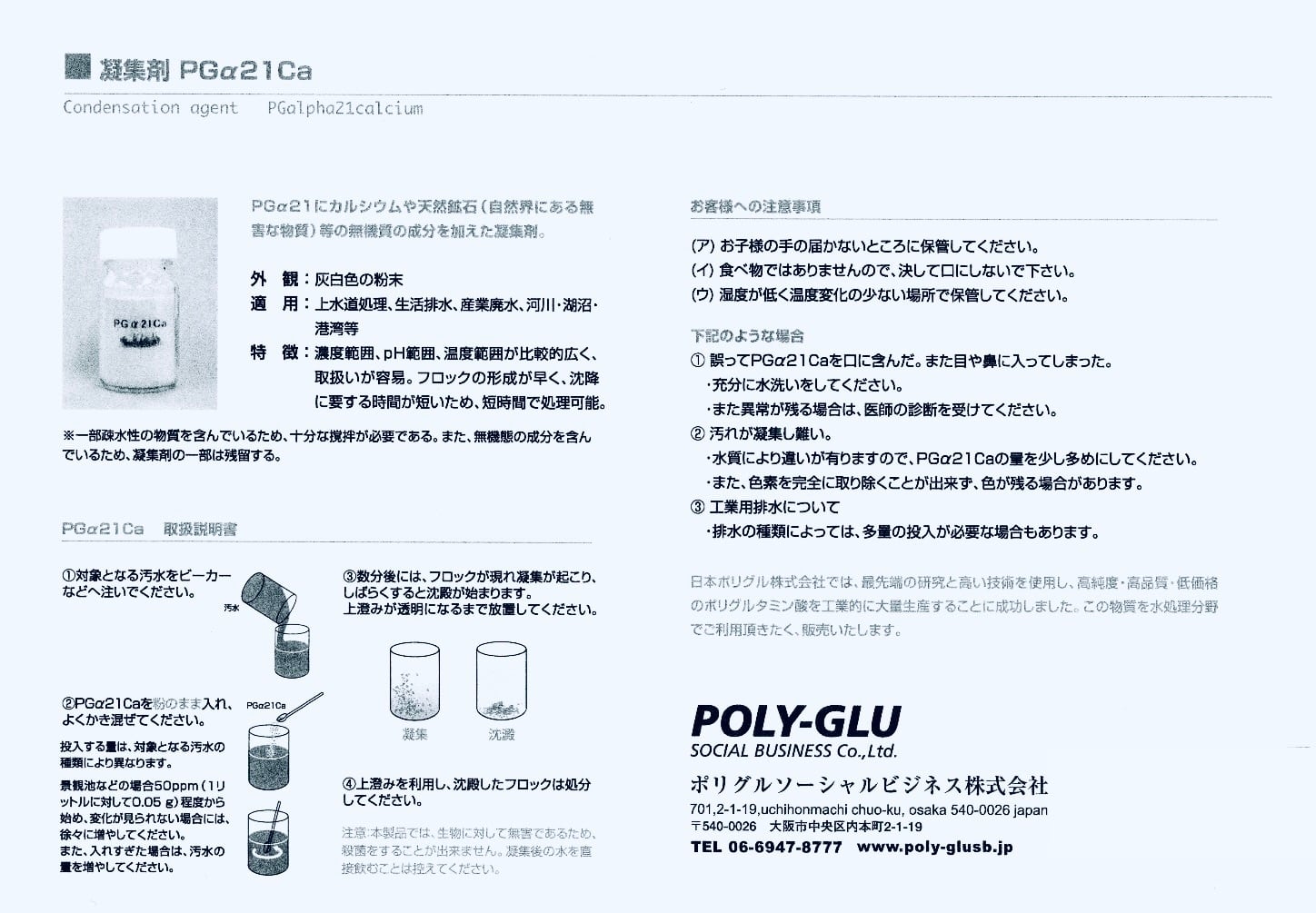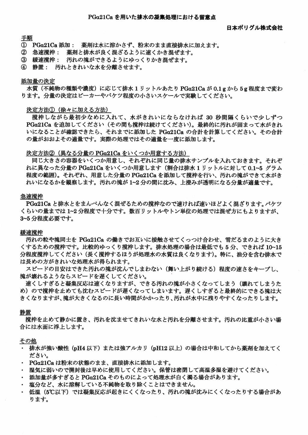 そんな時に役立つのが『日本ポリグル』の水質浄化剤『PGα21Ca』です。